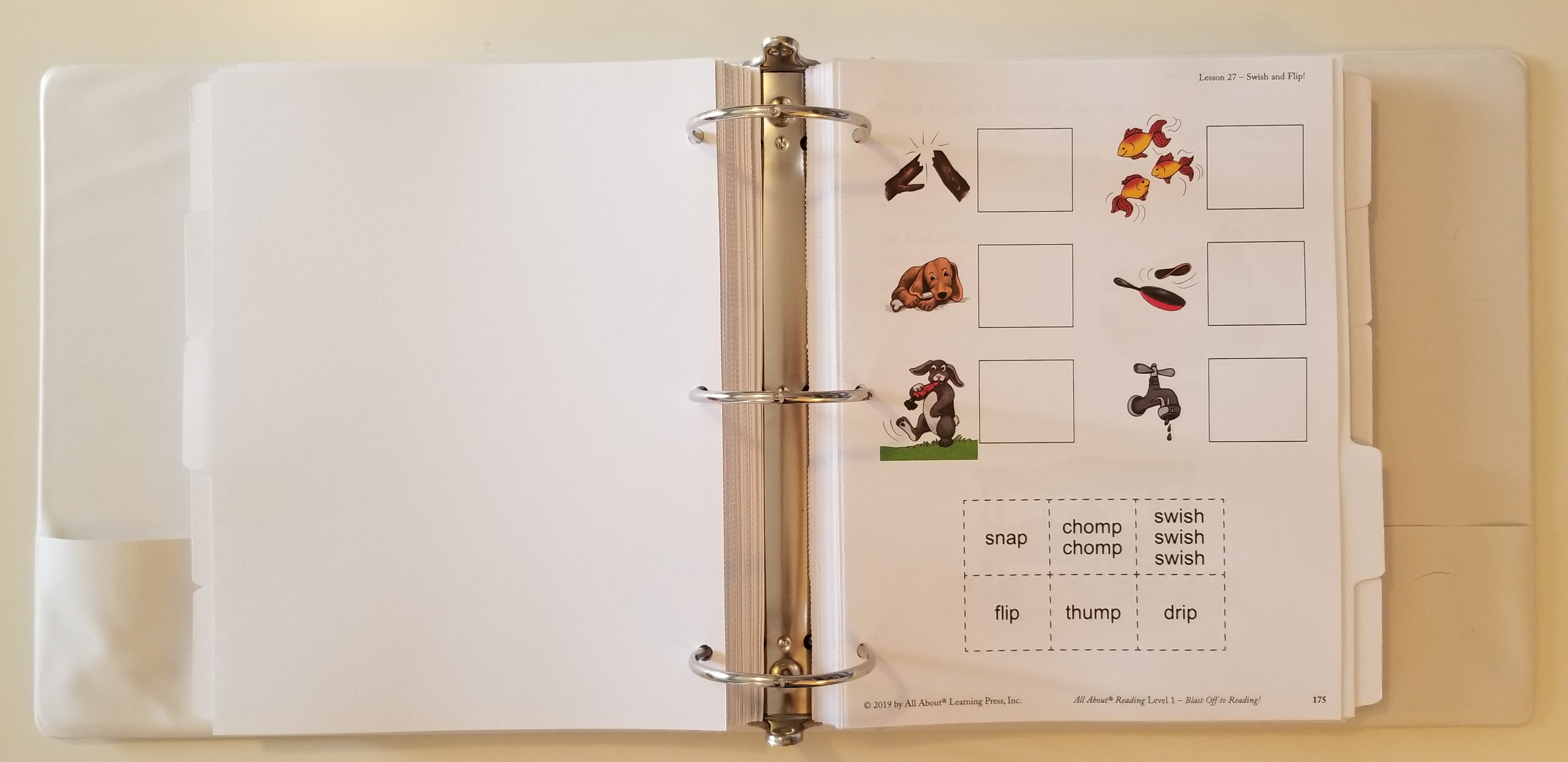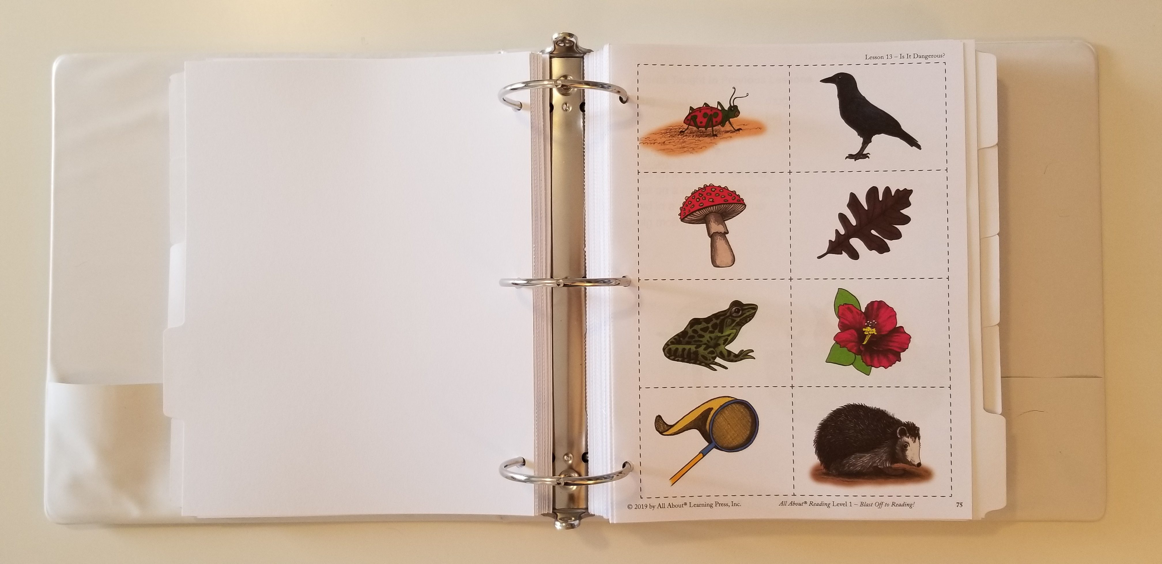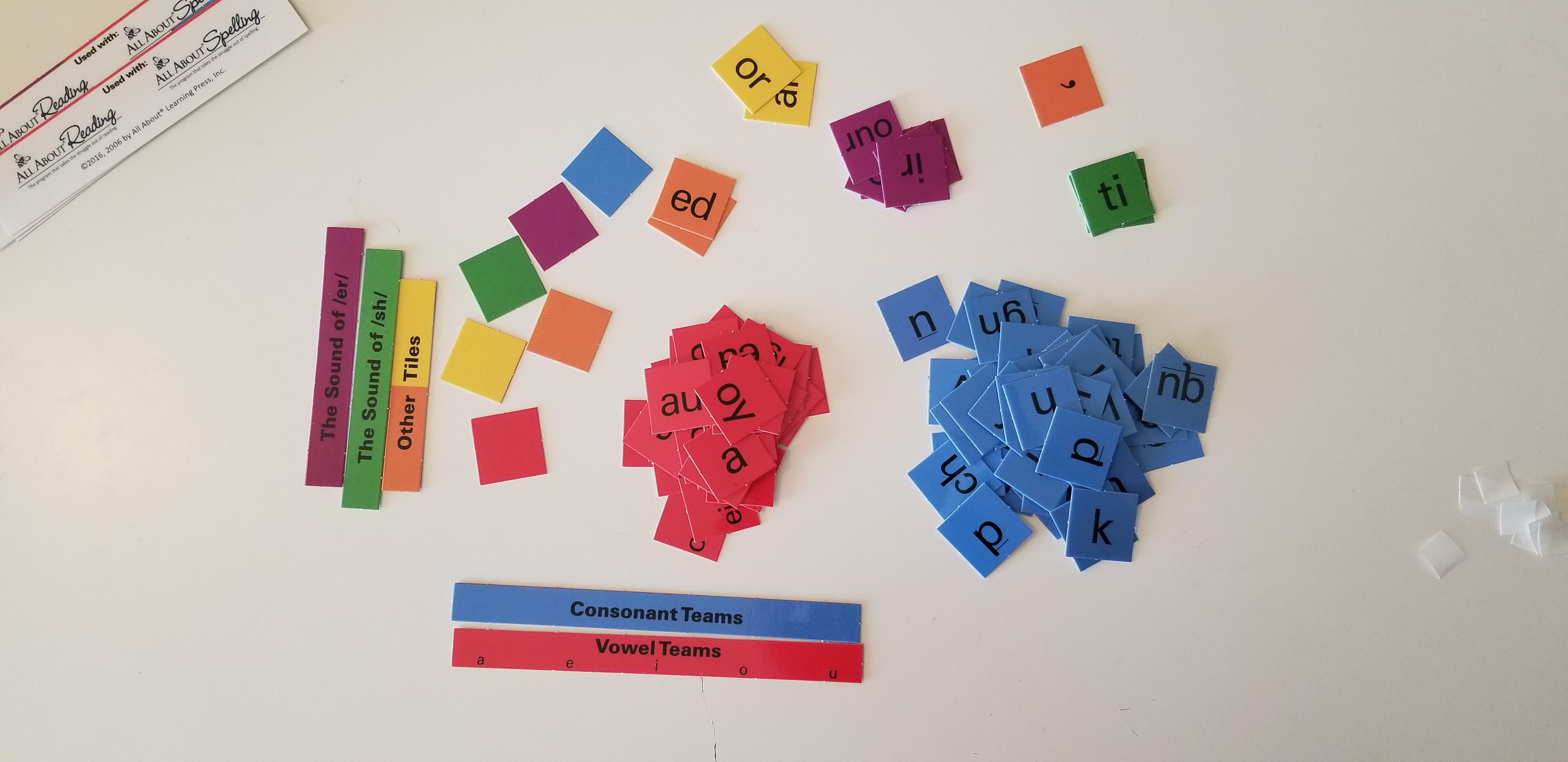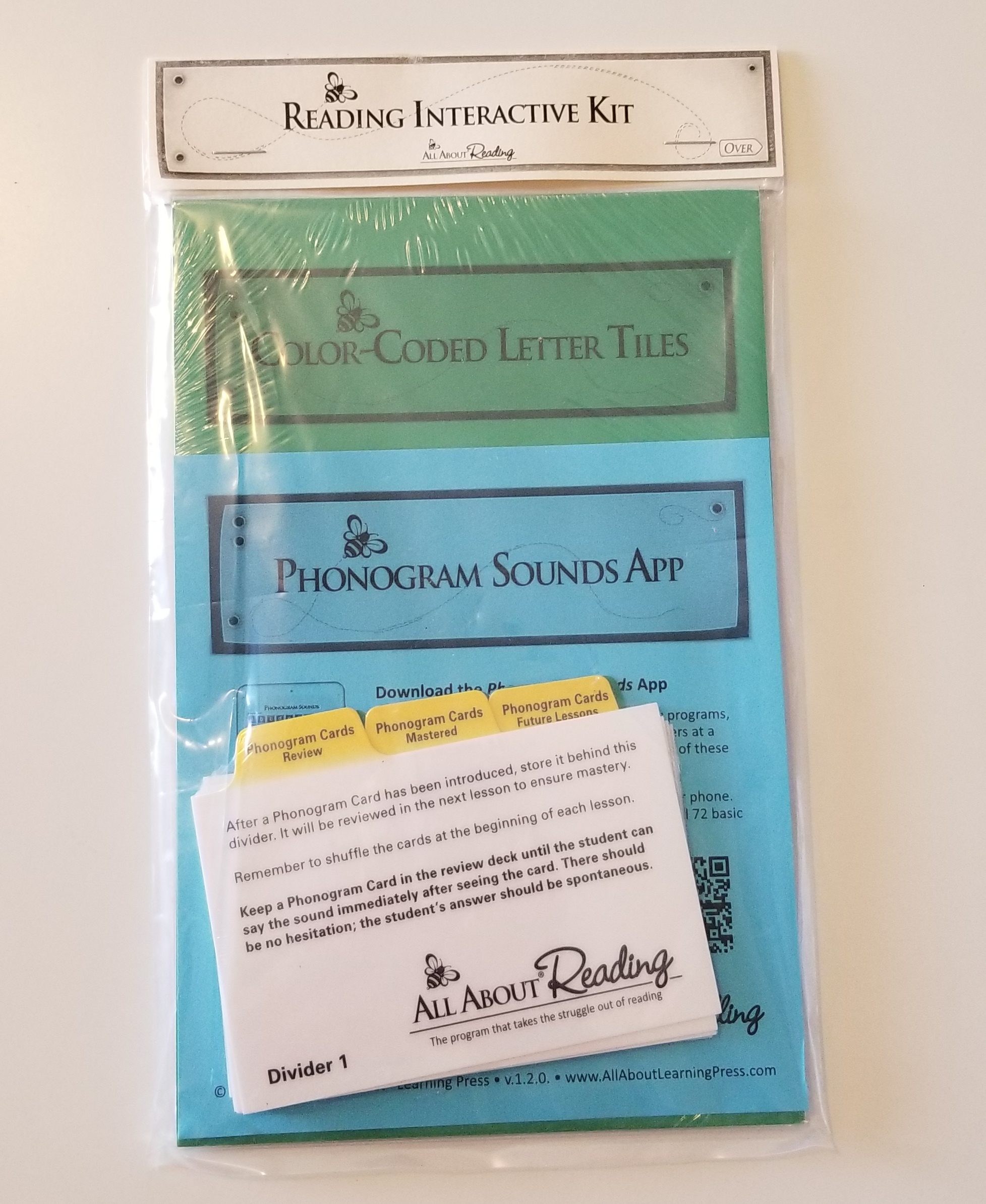 We got the teachers manual, student activity book, reading review box, box dividers, viewfinder bookmark, over 38 word card sheets with more than 225 word cards, magnet sheet, 108 letter tiles, plus the tote bag!Â