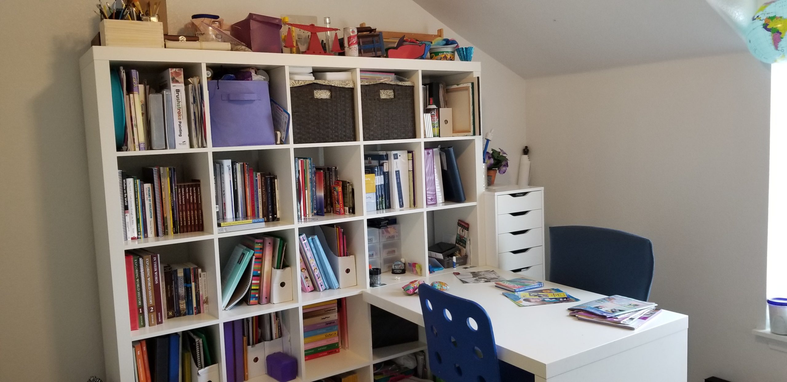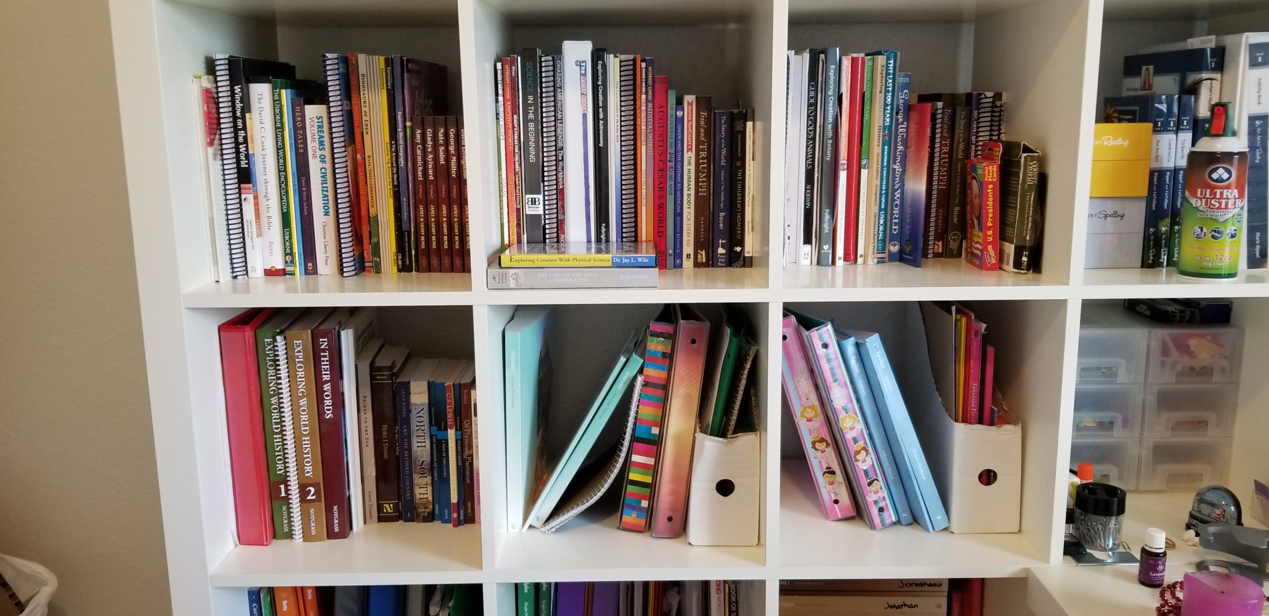 9 – 12:00. School time with the littles. We start with math then language arts, reading, history and finish with science. My 15 year old starts her school day and begins with English.