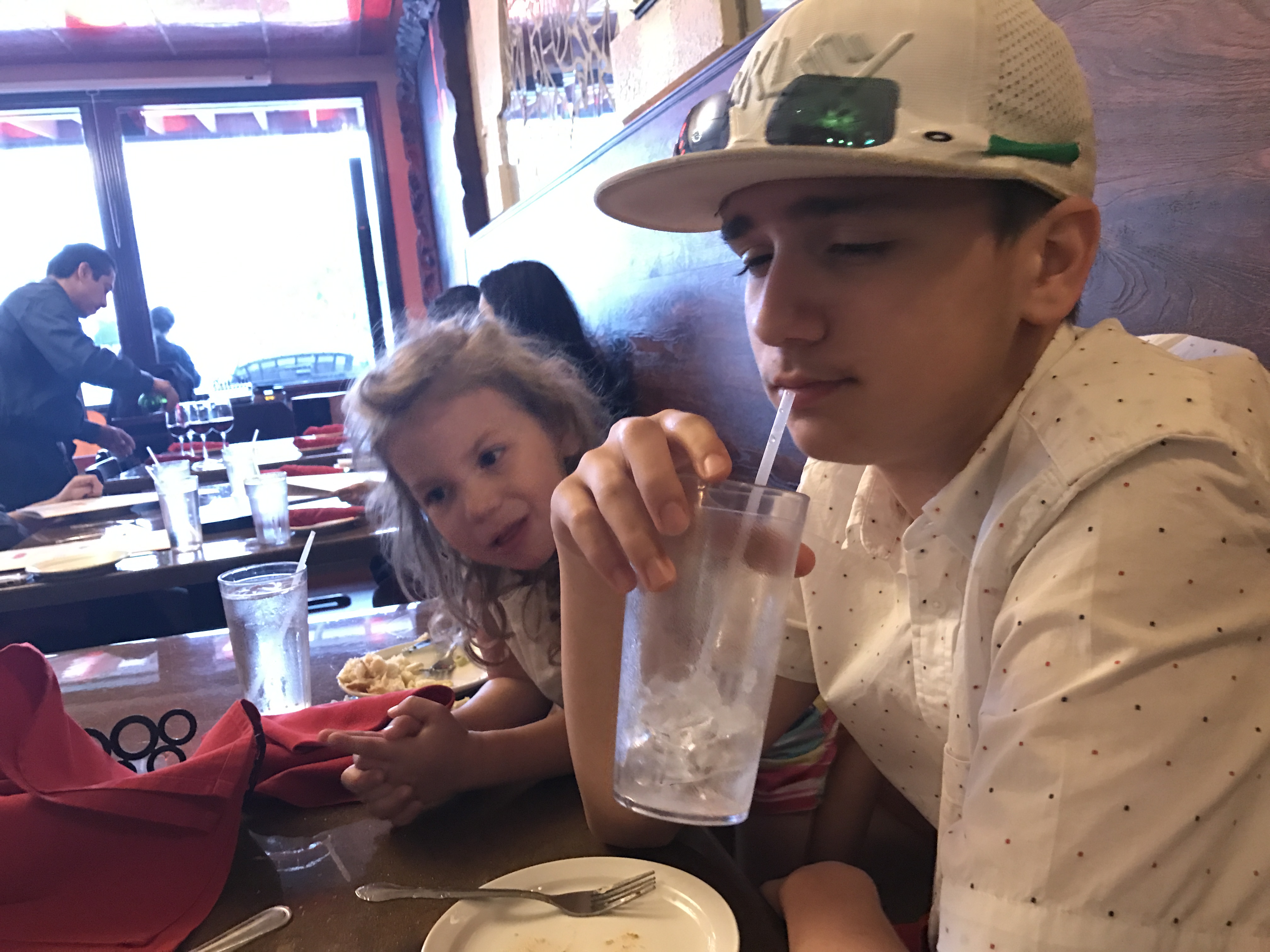 Big brother serving his baby sister at the end of a long and tiring day when I am sure he would have loved to have been carried. Jonathan served his sister without complaint. Galatians 5:13 Serve one another humbly in love.