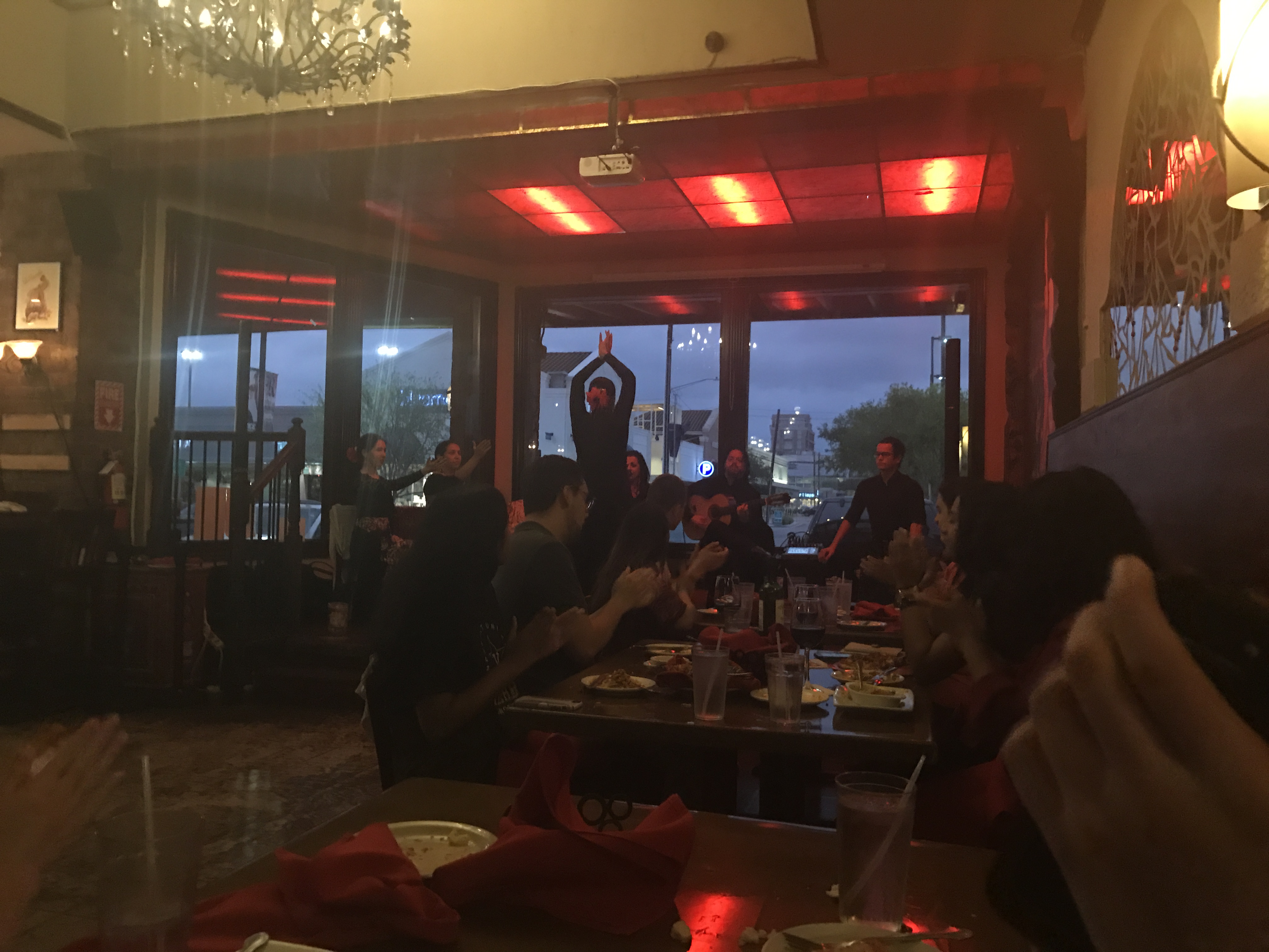 After spending all day at the Johnson Space Center we were all anxioous to fill our bellies with some delicious food! Joe found a great restaurant called Mi Luna and decided that we needed to try something new. Mi Luna is a Spanish tapas restaurant and they offer  live music and flamenco dancers. For those of you who don’t know, tapas are Spanish appetizers and if you have never been to a restaurant like this one I suggest you go, it was a lot of fun!